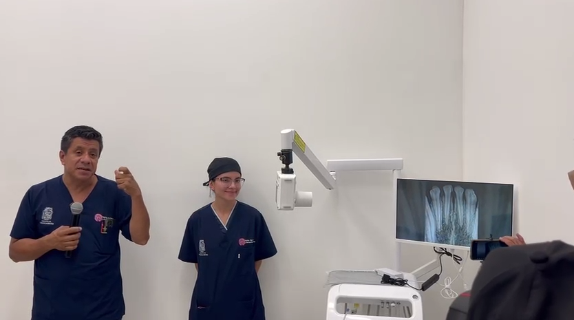 El cuarto de rayos X además cuenta con equipo de limpieza dental con proyector y una cámara de video para la cavidad oral del paciente. María Teresa Rendón Esquivel, Coordinadora General de Salud del Municipio de Aguascalientes, señala que la adquisición de este equipo postergó la apertura del hospital, pues son herramientas de última tecnología.