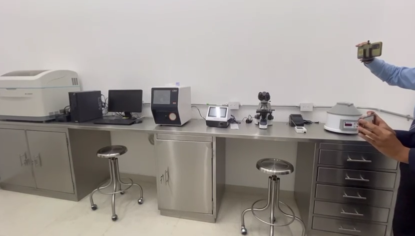 Además, el área de laboratorio dispone de equipo para análisis de química sanguínea, biometría hemática, inmunofluorescencia, microscopios, analizador de orina y centrifugadora.