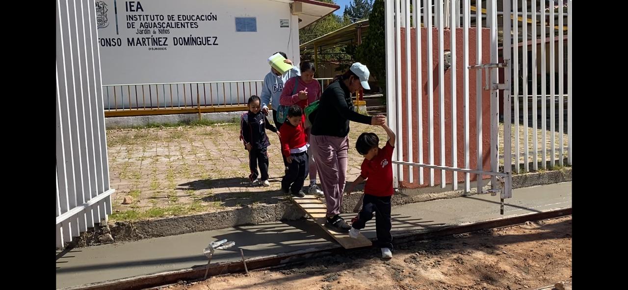 El Modelo Integral de Aguascalientes (MIAA) brindó atención al servicio de agua, donde proporcionó pipas en lo que se restablecía el suministro del líquido en la institución y personal de la Secretaría de Obras Públicas Municipal realiza labores de rehabilitación de la banqueta, situación que es señalada como peligrosa para los menores y peatones, al realizarse en el horario escolar.