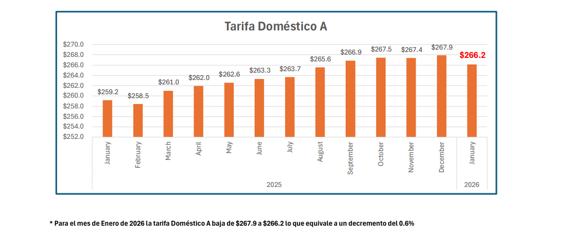 - Tarifa doméstico A: de $267.9 a $266.2