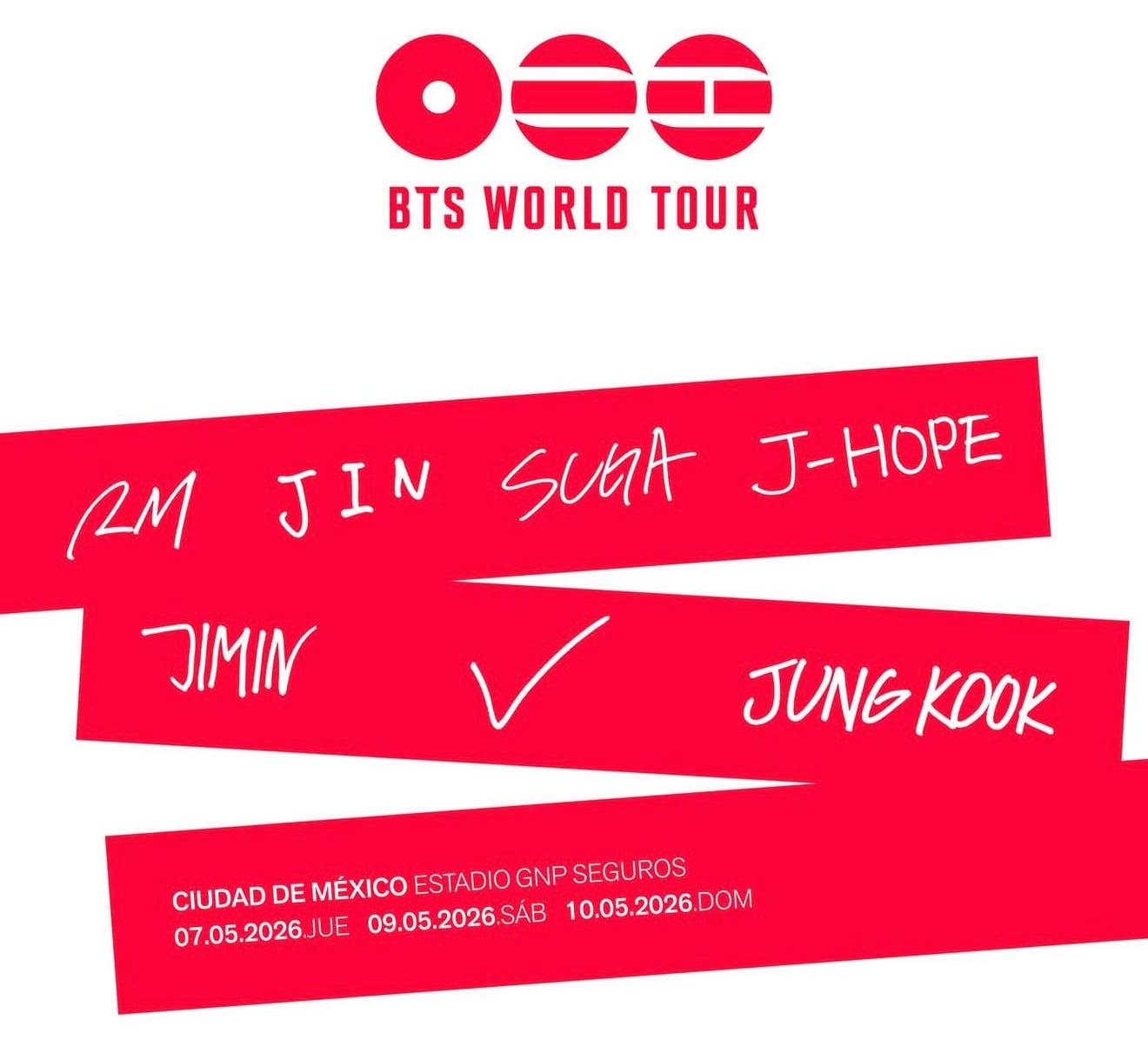 Las buenas noticias llegaron y los fans mexicanos de BTS celebran que el regreso incluye 3 shows el Estadio GNP de la Ciudad de México, los días 7, 9 y 10 de mayo de 2026.