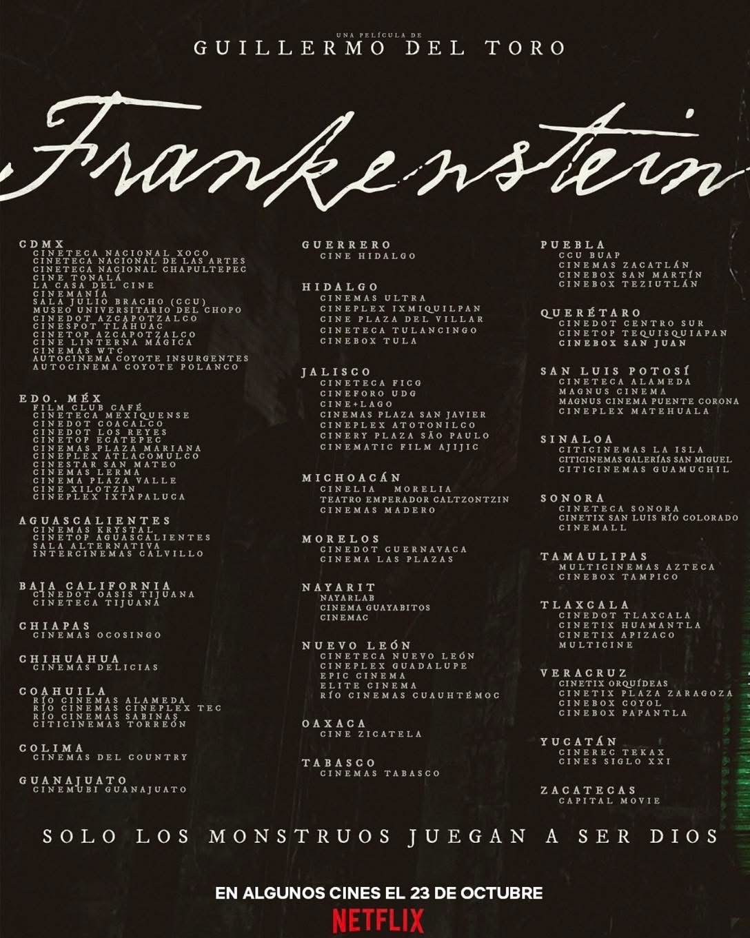 "Frankenstein" de Guillermo del Toro llegará a cines seleccionados de Aguascalientes