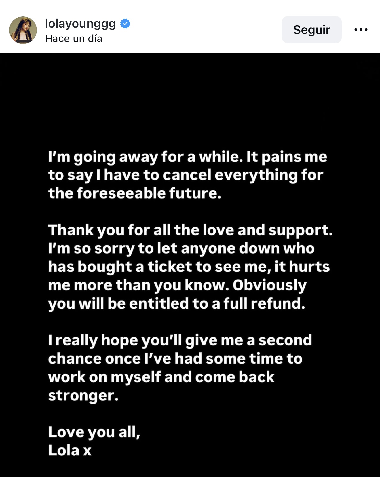 Antes de este incidente, Lola Young ya había cancelado un show en Nueva Jersey por razones de salud mental.