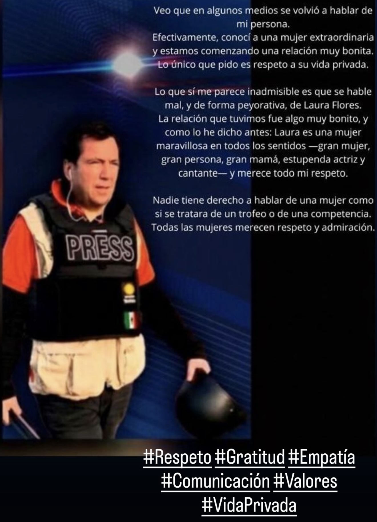 En el mismo escrito, Lalo pidió evitar hacer malos comentarios sobre Laura Flores, con quien vivió un intenso romance de algunos meses, el cual no concluyó en los mejores términos, pues según la artista, él solo dejó de contestarle y la bloqueó.