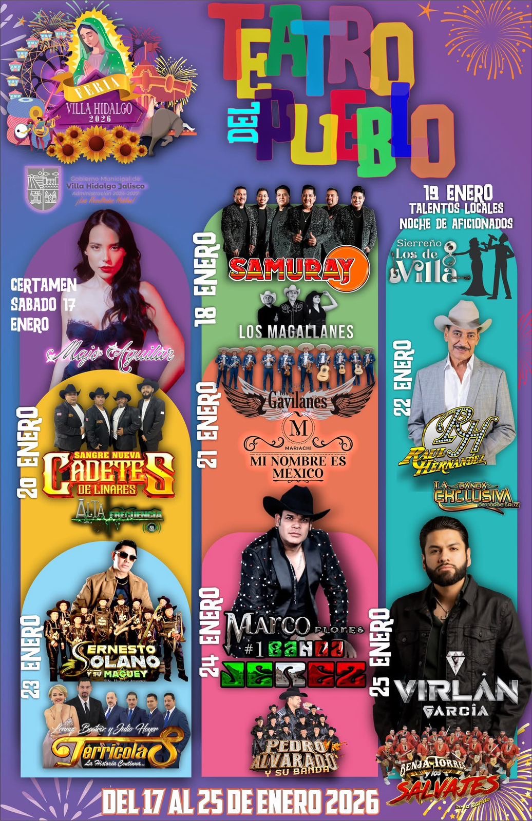 La feria de Villa Hidalgo 2026 presentará en el Teatro del Pueblo a artistas como Samuray, Laberinto, Marco Flores y Virlán García, entre otros.