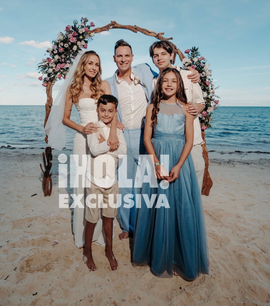 Ambos "se juraron amor eterno en una mágica boda espiritual, realizada este 2 de enero, frente al imponente mar de Cancún, acompañados por sus invitados más especiales: sus hijos", indica el artículo de la revista.