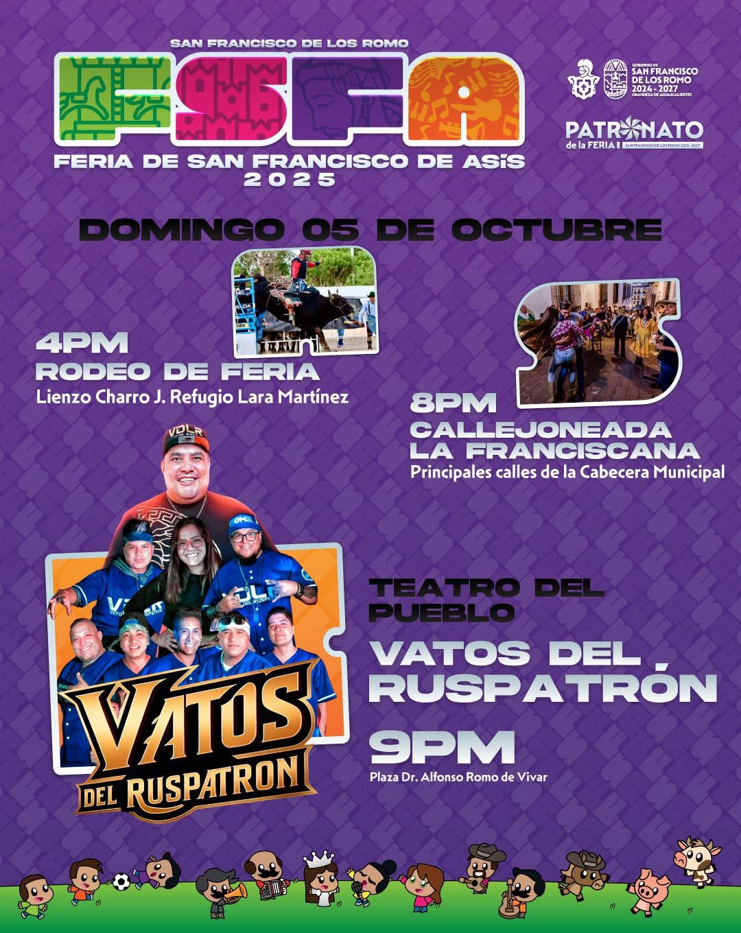 La Feria de San Francisco de los Romo llegará a su fin este domingo 5 de octubre con un rodeo, callejoneada y el concierto de Los Vatos del Ruspatrón.