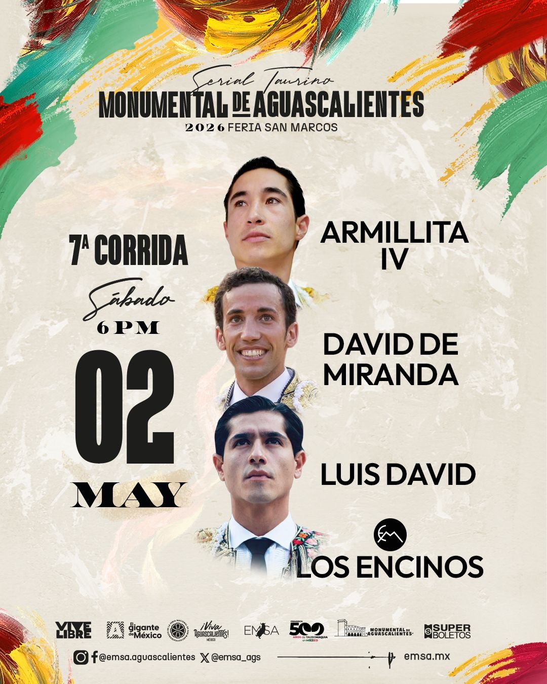 Será el próximo sábado 2 de mayo que se lleve a cabo la 7ma corrida de la FNSM desde la Plaza de Toros Monumental de Aguascalientes, en donde David de Miranda tendrá su primera aparición en el Serial Sanmarqueño y compartirá cartel con Armillita IV y Luis David, con toros de la ganadería de los Encinos.