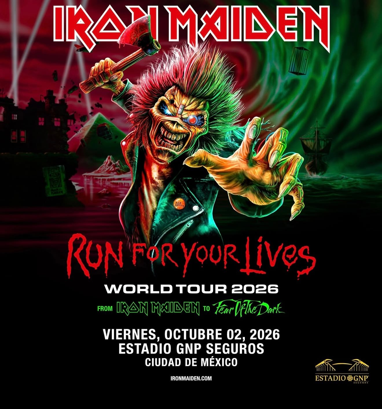 Iron Maiden anunció a través de sus redes sociales su regreso a México para 2026 con un show en el Estadio GNP Seguros, de la Ciudad de México, como parte del "Run For Your Lives World Tour 2026!".