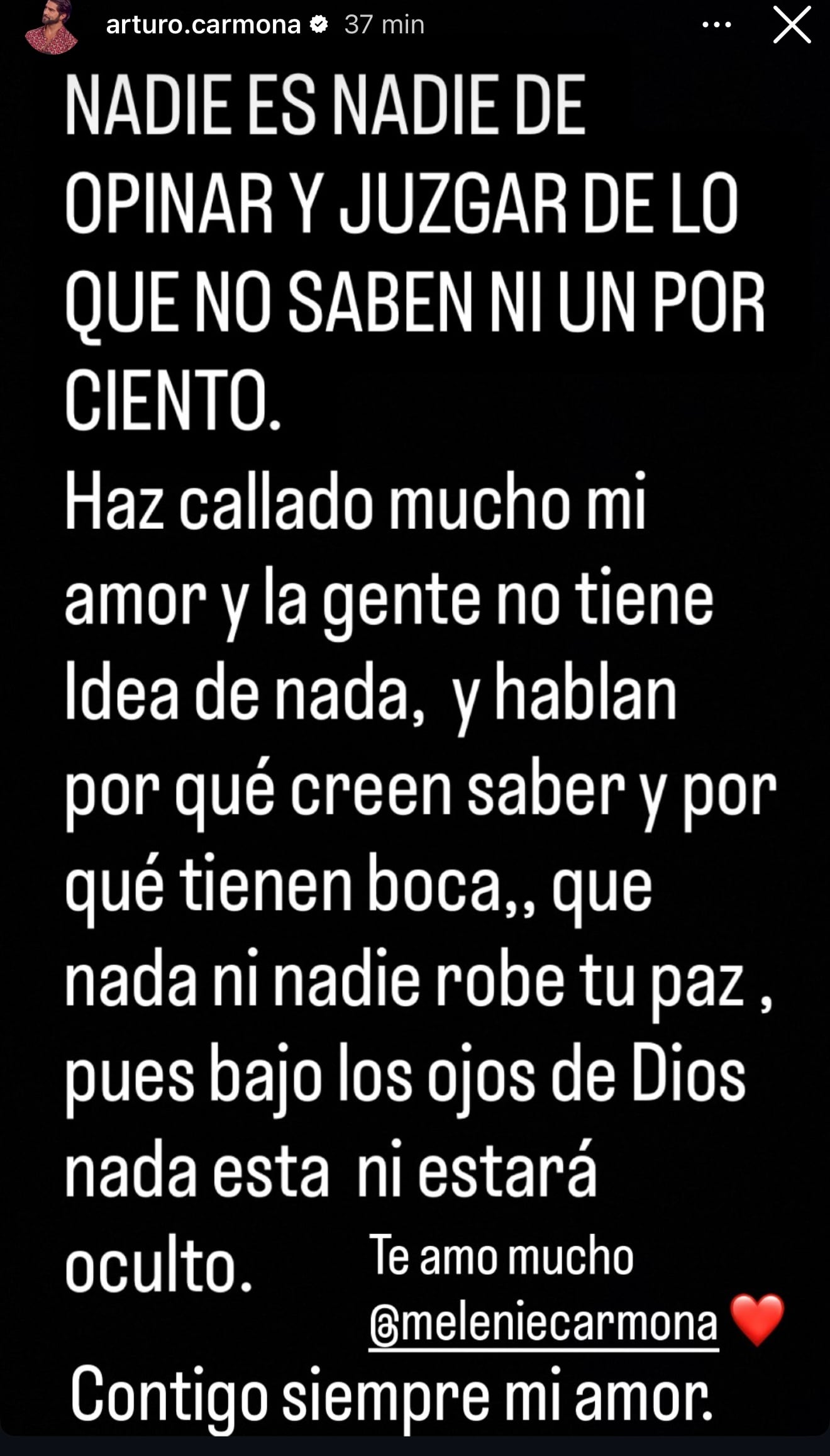 Luego de que las declaraciones de la joven, su papá, Arturo Carmona, publicó en su cuenta de Instagram un mensaje de apoyo a su hija. "Has callado mucho mi amor y al gente no tiene idea de nada, y hablan porque creen saber y porque tienen boca. Que nada ni nadie robe tu paz...", se lee.