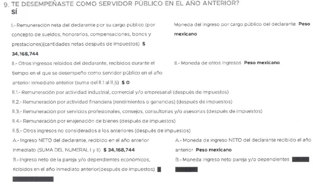 Según el diario "El Universal", el documento fechado el 27 de noviembre de 2024 y sellado como “recibido” por la Contraloría municipal, detalla que Limón Trigueros reportó un ingreso anual de 34 millones 168 mil 744 pesos como servidor público en su empleo previo. La cifra equivale a más de 2 millones 847 mil pesos mensuales.
