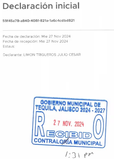 El actual tesorero del municipio de Tequila, Jalisco, Julio César Limón Trigueros, declaró haber percibido más de 34 millones de pesos como remuneración por su trabajo anterior como asesor legislativo. La cifra aparece en su más reciente declaración patrimonial presentada al asumir el cargo como funcionario municipal.